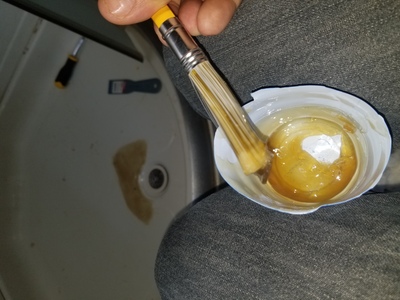 The resin started hardening pretty quickly. The reaction is exothermic, so I could feel some pretty significant heat coming from the bottom of the cup that I was using as my mixing tray. If I could have gotten to it in time, I could have used ascetone or lacquer thinner to clean the brush, but I didn’t have any on hand.