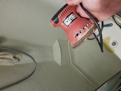 Nothing like the handy random orbit sander to deal with that problem. It made pretty quick work of any roughness in the surface. I didn’t take it all the way down to flat, as I am more concerned about preventing future cracking at this point than appearance. Maybe someday I’ll sand it again and paint it.