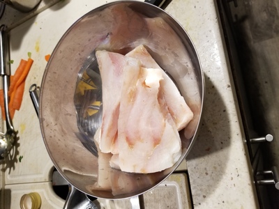 - 5 Alaskan Polluck Fillets, chopped to .75"
