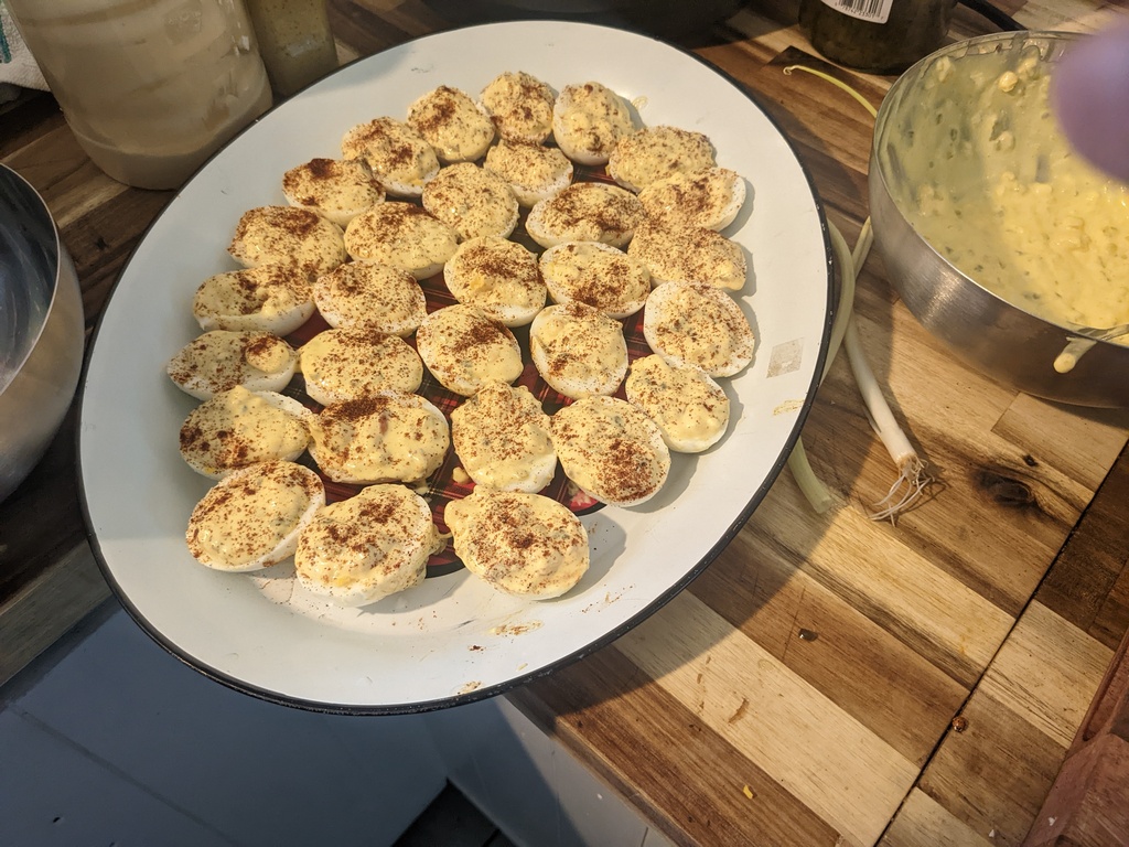 For something that is just in-effect just a giant pile of condiments and eggs, it’s an amazing dish, and easy to make in volume for a party.